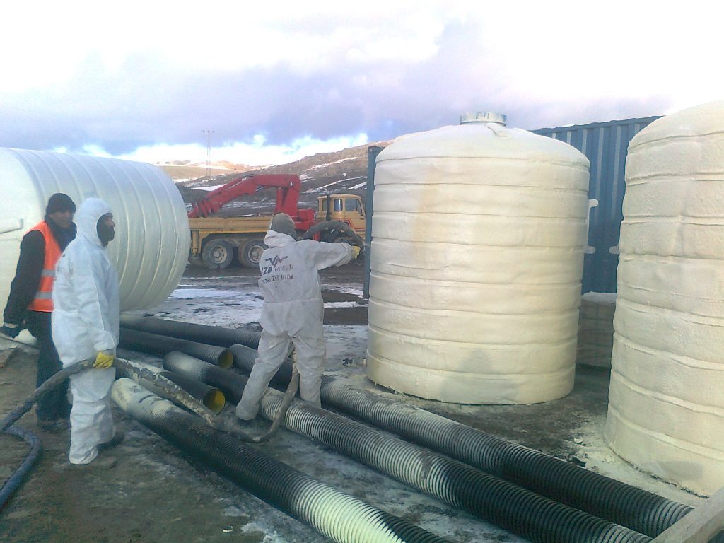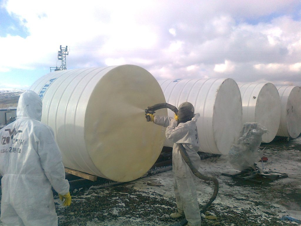 Sprey poliüretan köpük tankların izolasyonunda kullanılarak ısının kaybını ve dışarıya etkisini azaltmaktadır. Asıl olarak borulardan geçen maddelerin ısı değişikliklerine engelleyerek düzenli bir aktarma sağlamaktadır.